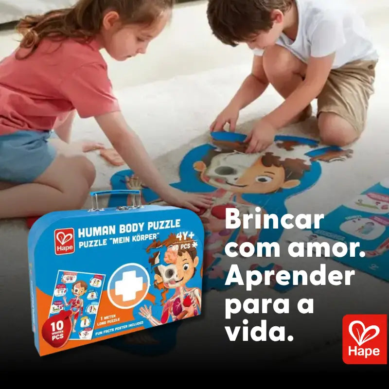 Transforme o aprendizado de biologia em uma brincadeira! Adquira o Quebra-Cabeça do Corpo Humano da Hape e incentive o amor pela ciência.