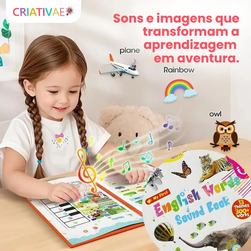 Desde animais e alimentos até rotinas diárias e natureza, o livro introduz palavras em contexto, tornando o aprendizado natural e divertido. Ao pressionar os botões interativos, os pequenos ouvem pronúncias claras e efeitos sonoros que reforçam memória e compreensão.