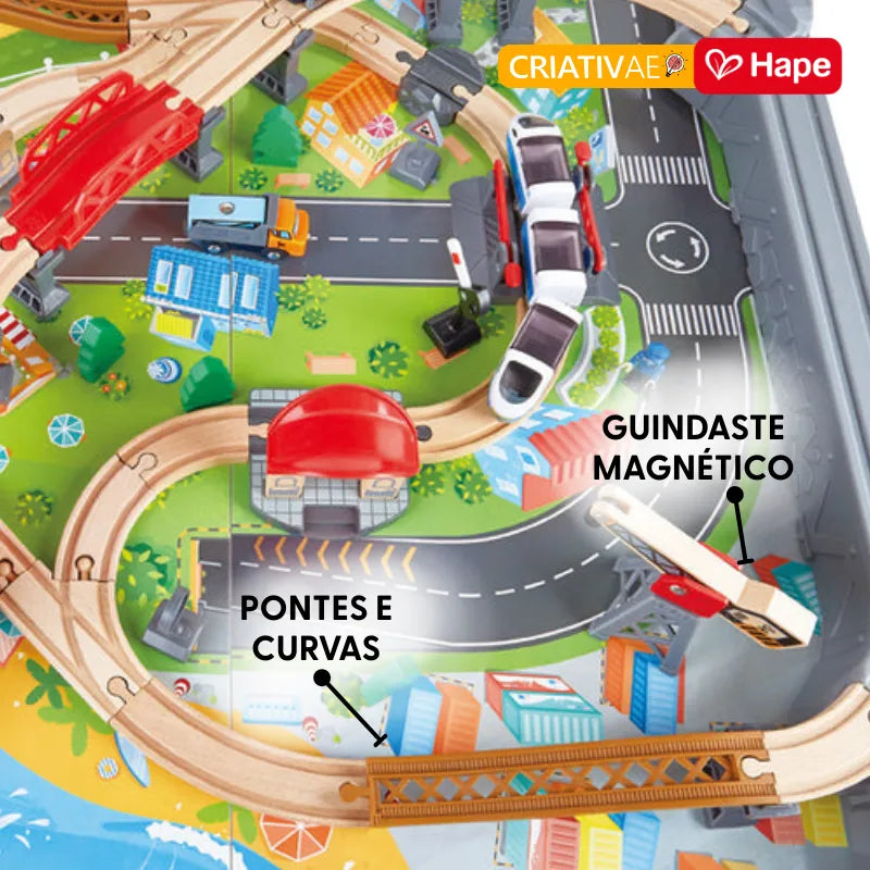 - Versatilidade: Quando os trens descansam, a superfície plana da mesa é perfeita para outras atividades criativas e pedagógicas.